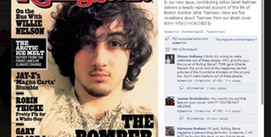 Напомним, популярный американский журнал Rolling Stone поместил на обложку августовского номера фото Царнаева. После публикации анонса нового номера в Facebook подписчики страницы журнала оставили сотни гневных и возмущенных комментариев. Американские ритейлеры Walgreen, Tedeschi Food Shops, Stop & Shop и CVS отказались продавать августовский выпуск журнала. Российская версия Rolling Stone также отказалась публиковать на обложке фото Царнаева.
