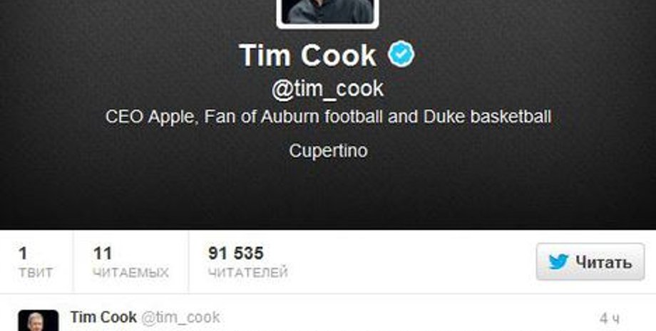Несколько часов назад генеральный директор Apple Тим Кук оставил свое первое сообщение в Twitter.