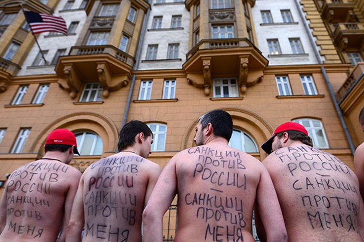 Участники акции "Санкции против России — санкции против меня" около посольства США в Москве / Фото: РИА Новости