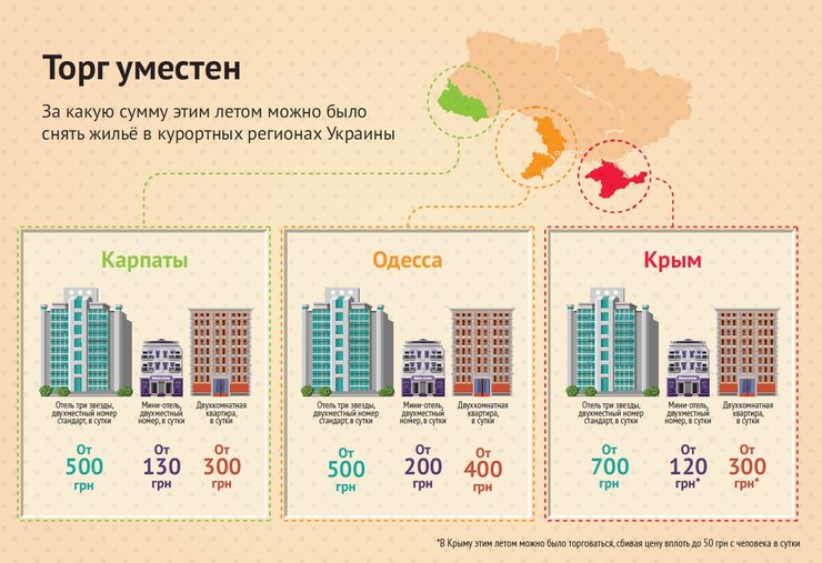 В прошлом году город посетило по разным оценкам 1,1–1,3 млн человек. Аскеров говорит, что, судя по заполняемости отелей, эти цифры корректные. "По итогам этого года, думаю, мы получим 600 тысяч, максимум 700 тысяч туристов, — считает он. — То есть потери в количественном отношении двукратные, в финансовом отношении, думаю, трехкратные. Выиграли те гостиницы, которые зафиксировали цены в гривне, несмотря на курс доллара, старались их выдерживать". Больше всего пользовались спросом отели средней ценовой категории, предлагающие номера по 400–800 грн в сутки.