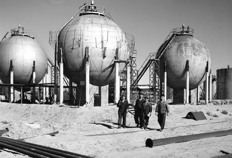 "Активно наращиваются объемы экспорта нефти на мировой рынок. СССР в борьбе за увеличение своей доли занимает второе место в общем рейтинге. Появление на рынке недорогой советской нефти вынуждает большинство нефтяных компаний других стран также снизить цены", — гласит оригинальная подпись к фоторепортажу о росте советской нефтедобычи в 1980-х