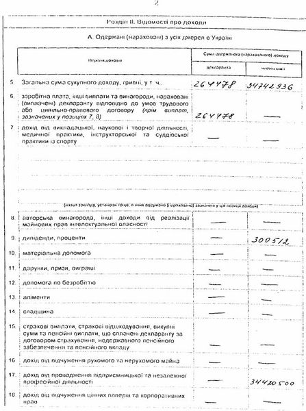 Согласно декларации, годовой доход супруги Матиоса - 34,742 млн грн.