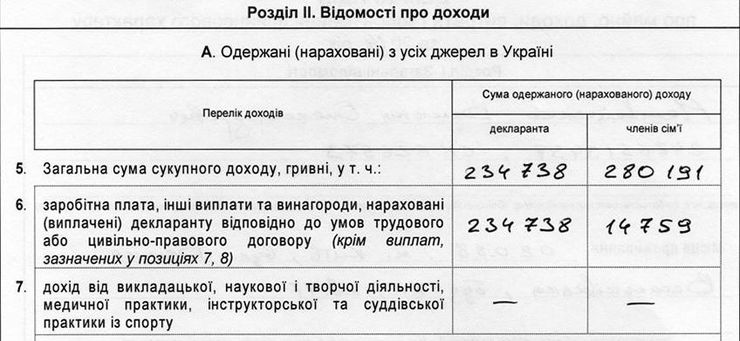 Супруга Наливайченко получила доход с дивидендов и проценов - 115,8 тыс. грн. и отчуждения движимого и недвижимого имущества - 149,6 тыс. грн.