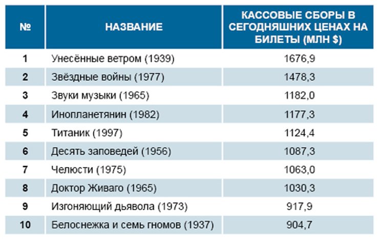 Побеждают унесенные временем. Топ-10 кассовых фильмов
