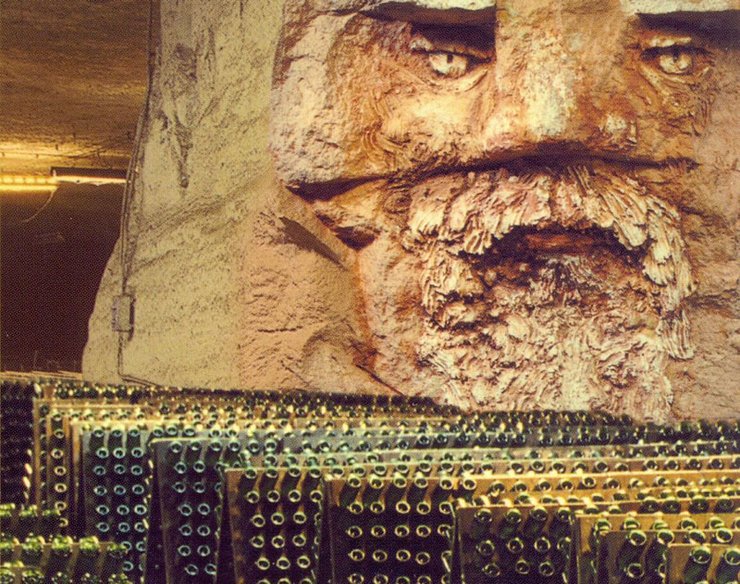 Залпы артиллерии и гул танков не внесли беспорядка в ряды бутылок, хранящихся в ста футах под землей в погребах Артемовского завода шампанских вин, пишет Тед Филипс.