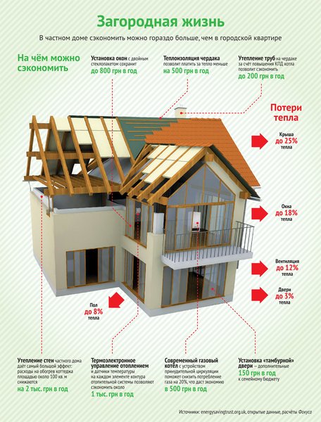После повышения тарифов львиная доля коммунальных платежей приходится на отопление. Семья из трех человек, проживающая в квартире площадью около 50 квадратов, будет тратить на него в отопительный сезон по 800 грн в месяц или 4,8 тыс. грн в год. При этом потери тепла в многоквартирном доме из-за неутепленных стен, подвала и чердака, старых окон и дверей на лестничных клетках и слишком высокой температуры осенью и весной могут достигать 70%. Кроме того, если нет счетчика тепла, платить нужно по тарифам "за метраж отапливаемой площади", а они изрядно "раздуты". "Только установка счетчиков и системы погодного регулирования позволяет сократить потребление тепла на 20–25%", — поясняет Черкашин.