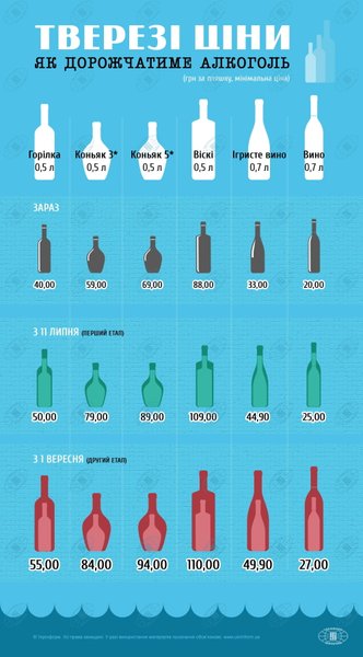 Также минимальная розничная цена на водку и ликероводочные изделия за 1 литр 100% спирта вырастет до 249,5 грн, а с 1 сентября 2015 г. - до 274,5 грн.