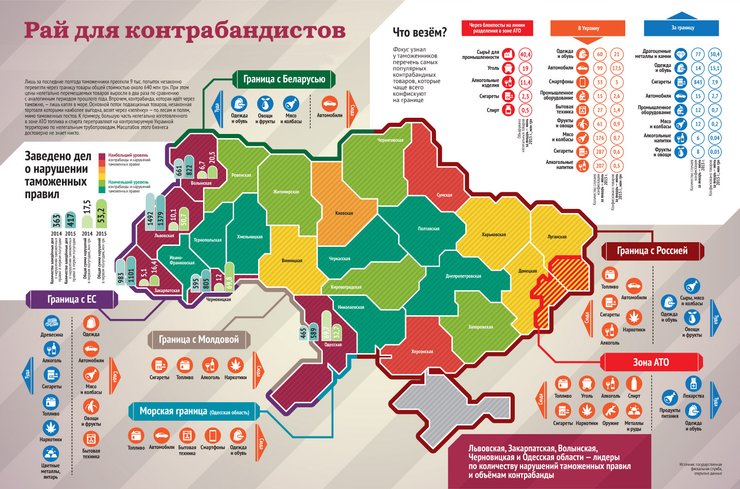 Фокус выяснил, в каких направлениях и какие товары возят контрабандисты мимо пограничных пунктов пропуска и в каких областях фиксируют наибольшее количество нарушений таможенных правил