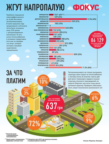 Впрочем, даже установка счетчиков тепла не означает, что тарифы за теплоснабжение будут справедливыми. Дело в том, что, рассчитывая максимальные цены для монополистов, НКРЭКУ использует формулу "затраты плюс прибыль". Но так как тарифы на коммунальные услуги в Украине всегда были политическим вопросом, прибыль монополистам "урезают" до нуля. Вместо этого теплокоммунэнерго "раздувают" затратную часть, закупая у связанных с ними предприятий по завышенным ценам товары и услуги. Это могут быть как дорогие канцелярские принадлежности, так и банковский кредит с нерыночной процентной ставкой. Такие манипуляции позволяют монополистам не задумываться о повышении энергоэффективности. Как результат — устаревшие топки в котельнях с низким КПД и потери тепла на плохо изолированных теплотрассах до 20%, что немыслимо ни в одной европейской стране. По оценкам экс-министра регионального развития Алексея Кучеренко, сегодня тарифы монополистов раздуты на 10–15%, не говоря уже о неоправданных затратах на потери энергии.