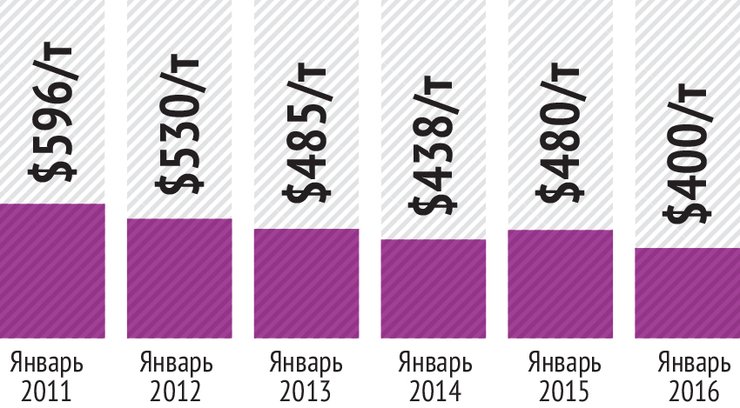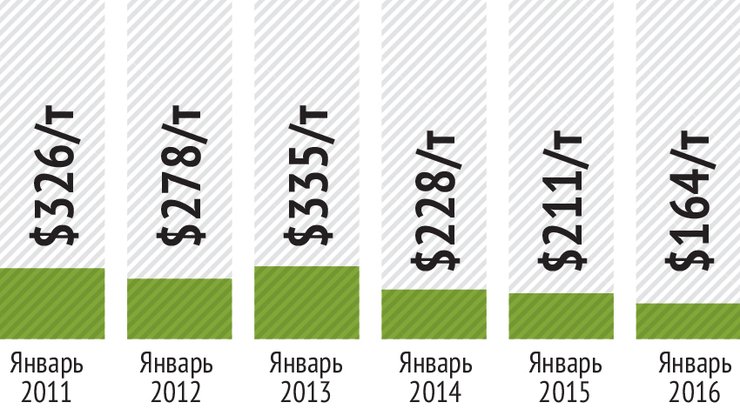 — В мире уже который год подряд собирают рекордный урожай пшеницы. Спрос на нее растет меньшими темпами, чем предложение. Соответственно увеличиваются переходящие остатки и падает цена. Так, ожидается, что в 2016 году мировой урожай пшеницы вырастет еще на 9,5 млн т, что сопоставимо почти с половиной отечественного производства, а переходящие остатки — на 18,8 млн т (на 10%), что и давит на цену.