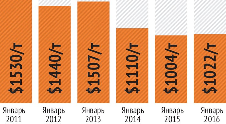 — С середины 2011 года мировые цены на руду упали более чем на 67%. Лишь в прошлом году стоимость этого продукта просела на 43%, обновив к декабрю многолетний уровень — $39 за т. Существенно снизились цены и на сталь. Cегодня цена стальной заготовки колеблется в пределах $250–260 за т. Ситуация сложная, особенно на фоне переизбытка производства со стороны Китая и России, где из-за девальвации рубля себестоимость металлопродукции существенно снизилась. А падение потребления на российском рынке стимулирует местных производителей активнее и больше экспортировать, в итоге российская металлопродукция идет на традиционные для Украины рынки сбыта. Вероятно, позитивные изменения баланса спроса и предложения на рынке произойдут не раньше второй половины 2016-го или в 2017 году.