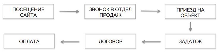 Для начала разберемся с прописными истинами. Воронка продаж у большинства компаний-застройщиков выглядит следующим образом: