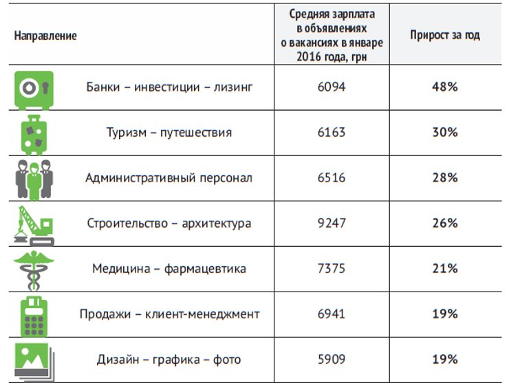 По информации рекрутинговой компании WORLD STAFF, в 2015 году 90% компаний повысили зарплату персоналу в среднем на 15%. У компании EY в Украине аналогичные данные. Повышение варьировалось от 9% до 27% и зависело от эффективности сотрудника и рыночных показателей. Наибольший рост зарплат аналитики EY констатировали в сфере оптовой и розничной торговли (+22%) и в агрохимии (+20%). Но инфляцию в 43% такие надбавки все равно не перекрыли.