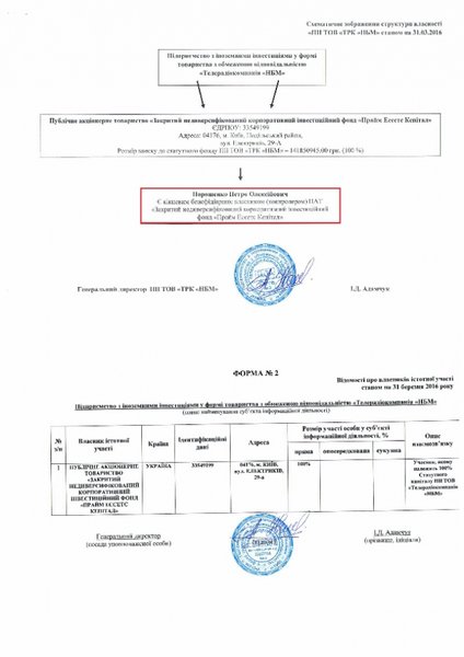 В "ТРК НБМ" единственным акционером выступает акциионерное общество "Закрытый недиверсификационный корпоративный инвестиционный фонд "Прайм Эссетэ Кэпитал", владельцем которого является Порошенко.