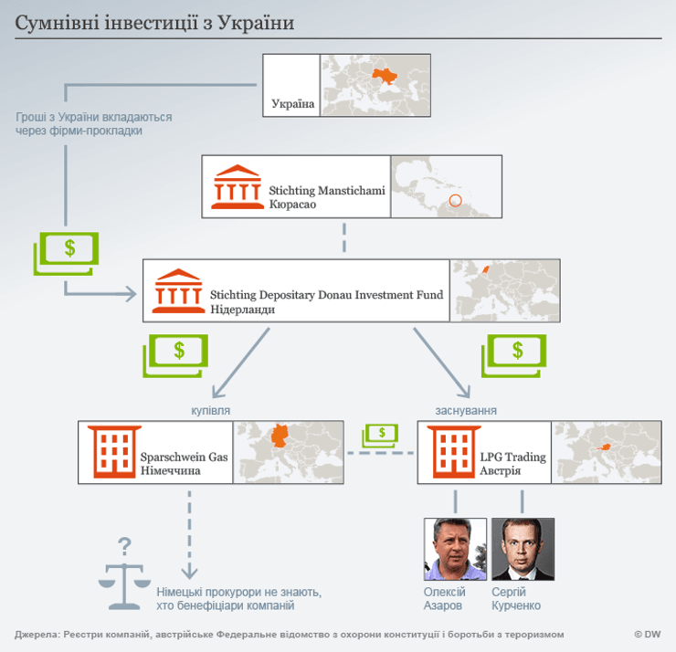 В то же время, согласно информации, австрийская прокуратура уже давно знает, кто стоит за офшорными фирмами, которые покупали заправки Sparschwein Gas. Еще в июле 2014 года в Австрии заморозили счета компании LPG Trading – 100% "дочки" голландского траста, которому принадлежат немецкие заправки. Австрийцы установили, что бенефициарами компании являются Сергей Курченко и сын бывшего премьер-министра Украины Николая Азарова Алексей Азаров.