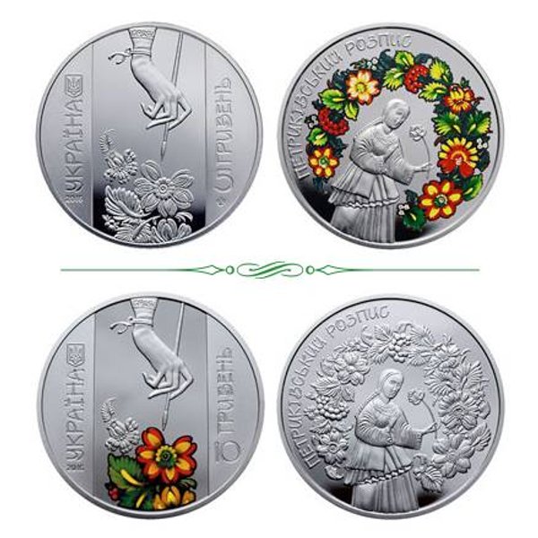 Эти монеты посвящены самобытному декоративно-орнаментальному искусству с давними традициями – петриковской росписи, название которого происходит от поселка Петриковка в Днепропетровской области.