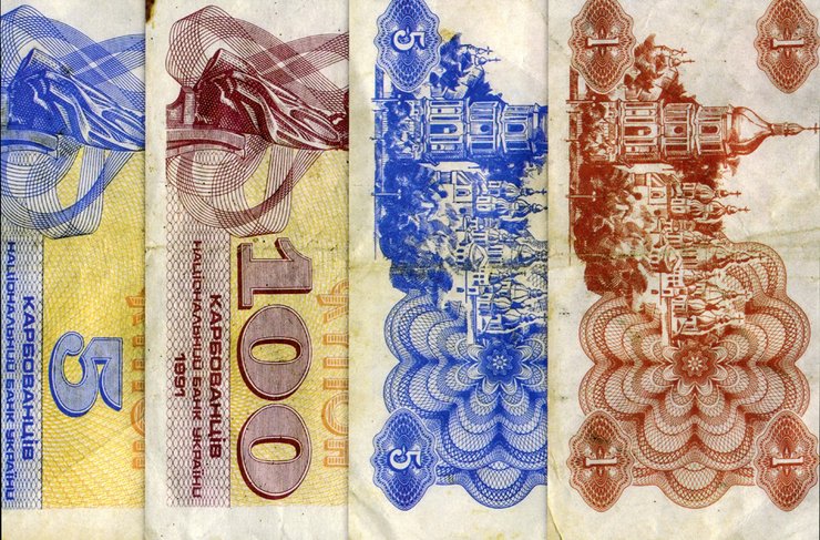 Гривна, которая была введена в оборот 2 сентября 1996 года, моложе украинского государства на 5 лет. В 1992–1996 годах, которые запомнились большинству украинцев как голодный и холодный период выживания, для расчетов в Украине использовалась временная валюта — так называемый купоно-карбованец. Странное слово "купон" было унаследовано от одноразовых отрезных купонов, которые были введены в ноябре 1990 года и печатались до декабря 1991 года на листах формата А4. Эти листы украинцы получали вместе с зарплатой, которую выдавали в советских рублях. При расчетах в торговой сети продавцы ножницами вырезали купоны соответствующего номинала. Такие меры были введены для борьбы с дефицитом товаров первой необходимости.