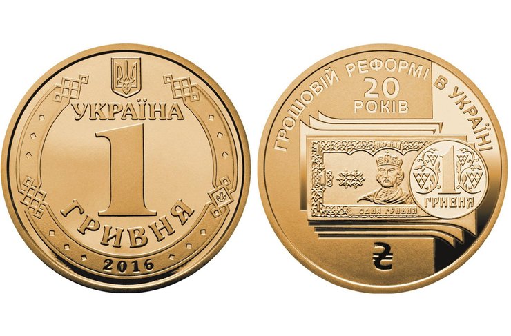 Двадцатилетие национальной валюты Украины также нашло отражение в тематике памятных монет. 1 сентября 2016 года Нацбанк ввел в оборот монету номиналом 1 гривна из алюминиевой бронзы под названием "20 лет денежной реформе в Украине". На реверсе монеты, в частности, изображена одногривневая банкнота в дизайне 1992 года. Такие купюры, выпущенные для Украины в Канаде, изъяли из оборота в 2003 году.