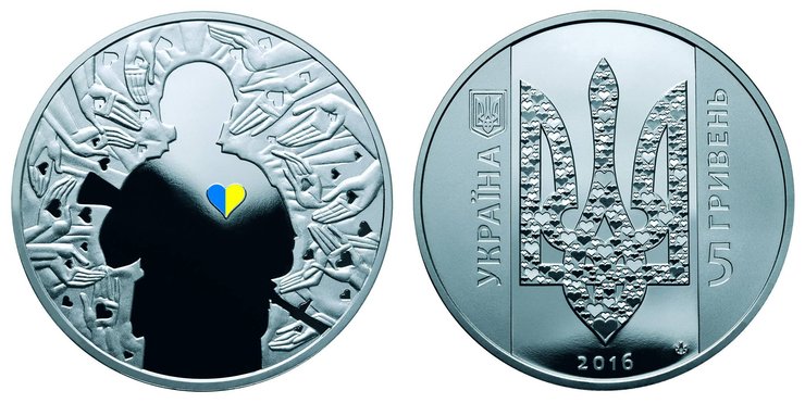 На реверсе монеты изображена композиция: в центре – абрис украинского воина с символическим желто-голубым сердцем, к которому со всех сторон протянуты стилизованные ладони с сердцами, символизирующими любовь, заботу, опеку, пожертвование и доброту.