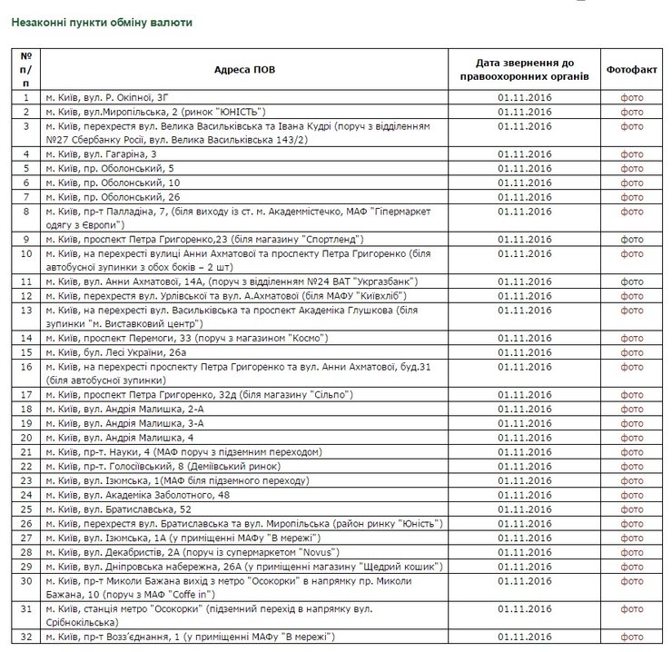 Список всех незаконных обменников Киева доступен на сайте Нацбанка.