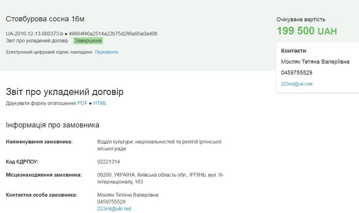Искусственная новогодняя елка высотой 16 метров обошлась бюджету Ирпеня в почти 200 тыс. грн, о чем свидетельствует сайт закупок Prozorro.