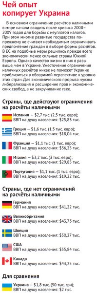 "В планах контролирующих органов проверять граждан на соответствие их расходов и доходов при любой оплате на сумму свыше 50 тыс. грн. И понижение ограничения расчетов наличными до 50 тыс. грн — первый шаг к введению такого налогового контроля. В других странах подобные механизмы уже действуют", — отмечает Евгений Копейко.