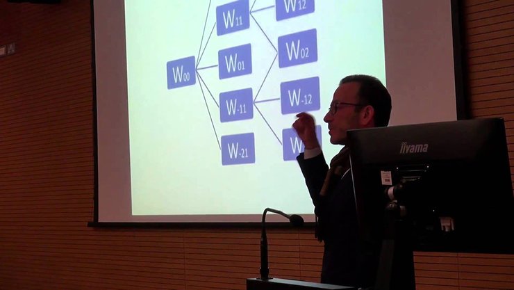 — Нарисуйте в уме фондовую биржу. На бирже цены фондового индекса и цены на акции ведут себя непредсказуемо. У вас тут же появляется вопрос: насколько они непредсказуемы? Каковы статистические данные поведения этой цены за какой-то промежуток времени? Будет ли эволюция цен волатильной и насколько?