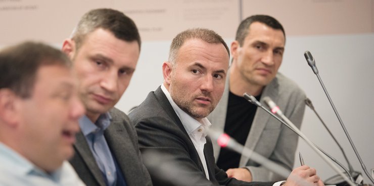 Городской голова Киева Виталий Кличко, члены Наблюдательного Совета Мемори­аль­ного центра Холокоста "Бабий Яр" Павел Фукс и Владимир Кличко