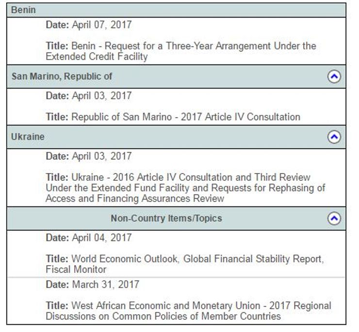9 марта директор пресс-офиса МВФ Джерри Райс сообщил, что совет директоров МВФ соберется 20 марта для завершения третьего пересмотра выполнения Украиной программы EFF и принятия решения о выделении следующего транша. 19 марта вопрос выделения Украине транша по программе расширенного финансирования на $1 млрд исчез из повестки дня совета директоров МВФ 20 марта.