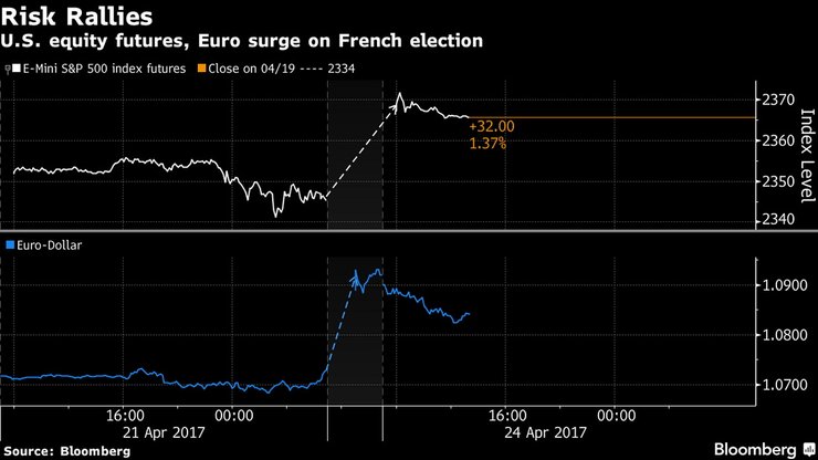 В понедельник, 24 апреля, евро подорожал до 5-месячных максимумов после того, как стало известно о победе Эммануэля Макрона в первом туре выборов президента Франции. Об этом сообщает Европейская правда со ссылкой на Bloomberg.
