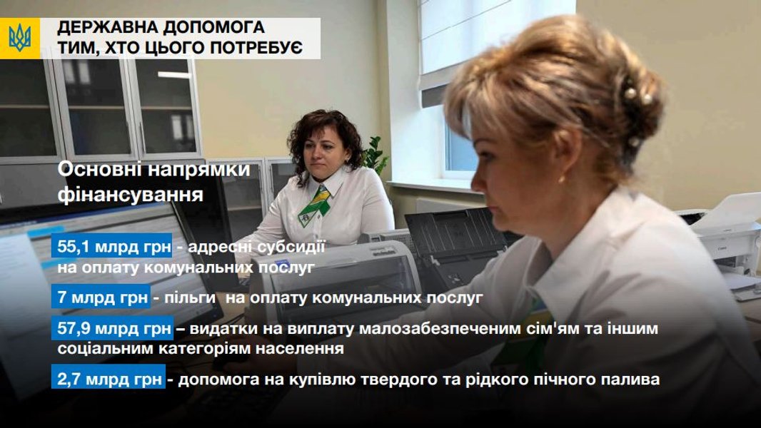 На социальные расходы в проекте бюджета запланировано 122,7 млрд грн. Из них 55 млрд грн - на субсидии, 57,9 млрд грн – на льготы малообеспеченным семьям, 2,7 млрд грн – на закупку домохозяйствами твердого топлива.