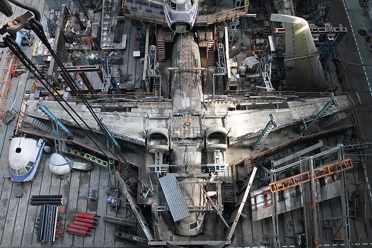 В подвешенном состоянии. На стапелях "Антонова" стоят около десятка недостроенных самолетов