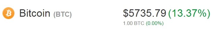 На данный момент стоимость биткоина по данным CoinMarketCap составляет 5735 долларов.