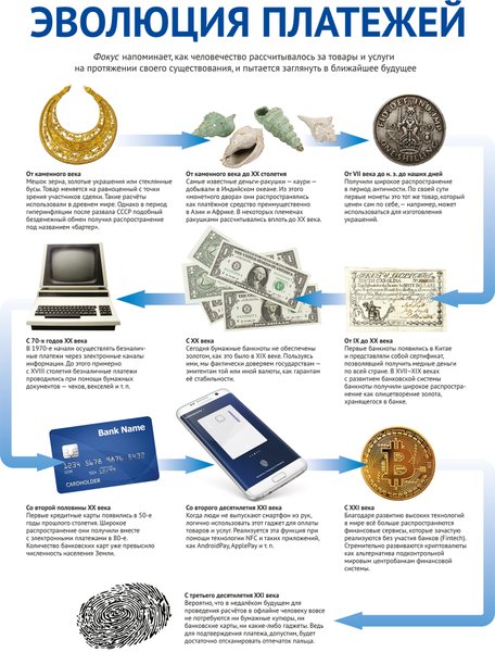 Также новую страницу в развитии платежных технологий может открыть широкое распространение в ближайшие годы интернета вещей. Так называют способность бытовых приборов подключаться к интернету и обмениваться информацией друг с другом или пользователями. "Ожидается, что к 2020 году у населения мира появится более 20 млрд устройств, подключенных к Сети, и потребители будут ожидать все новых и новых возможностей для оплаты продуктов и услуг в одно касание", — говорит Елена Коробкова. Она предполагает, что пользователи, например, могут захотеть покупать продукты питания при помощи экрана холодильника или оплачивать топливо с сенсорного монитора автомобиля.