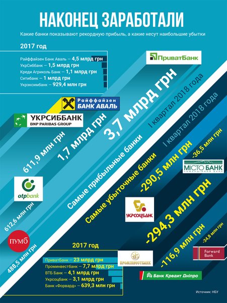 У выживших банков дела налаживаются. В І квартале 2018-го они получили 8,7 млрд грн чистой прибыли, что почти втрое превосходит финансовый результат аналогичного периода прошлого года. Однако, по оценкам опрошенных Фокусом финансистов, основной причиной роста стало не столько повышение доходов от банковского бизнеса, сколько снижение объема отчислений в резервы под плохие кредиты. Подобные издержки по сравнению с І кварталом 2017 года сократились почти в восемь раз. "Сама доля проблемной задолженности снижается очень медленно. Но резервы многие банки создали в предыдущие годы, и поэтому в 2018-м, а некоторые даже в 2017 году смогли вернуться к прибыльной деятельности", — объясняет Анастасия Туюкова, старший аналитик Dragon Capital.