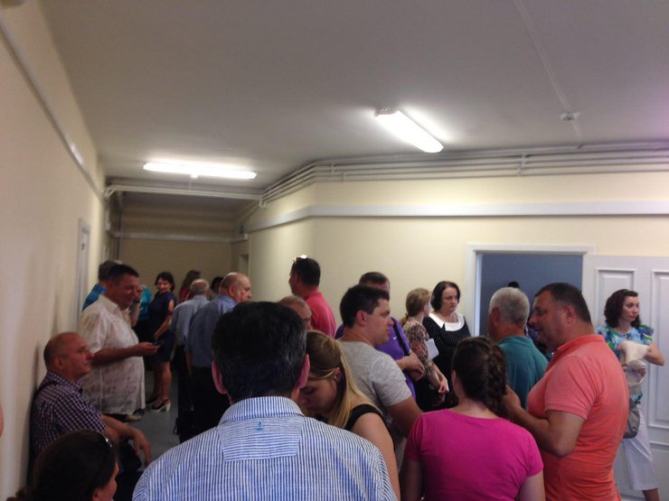 В небольшой комнате, именуемой актовым залом, душно и тесно. Здесь собрались около сотни людей, представляющих "общественность". По словам активистов, большая часть из них – сотрудники автобусного парка №6, которых согнали для имитации общественного мнения.
