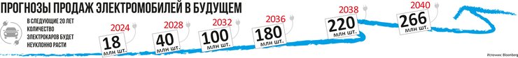 Тем не менее прогнозы на будущее оптимистичные. Продажи автомобилей с электрическим двигателем (в том числе гибридов) растут с 2012 года. В 2017-м продажи таких машин выросли на 38% по всему миру. По прогнозам консалтинговой компании EV-volumes, в 2018 году рынок сохранит этот темп. Эксперты международной организации ОПЕК прогнозируют, что в 2040 году в мире будет ездить 266 млн электромобилей.