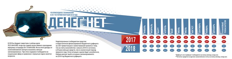 Как отмечает Роман Шпек, напряженная ситуация с доходами вместе со слабым финансированием бюджетного дефицита привела к сокращению ликвидности государственной казны: если год назад на едином казначейском счете находилось 44 млрд грн, то в конце июля 2018-го — только около 2 млрд грн. Это минимальный показатель за 4,5 года, с революционного января 2014-го.