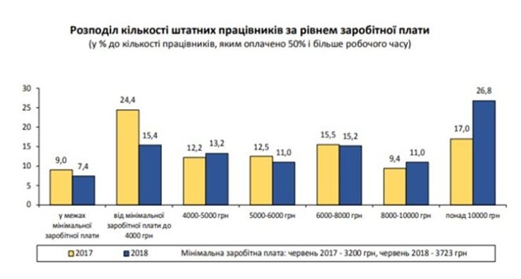 В июне количество трудящихся с зарплатой более 10 тысяч гривен выросло с 17% до 26,8%.