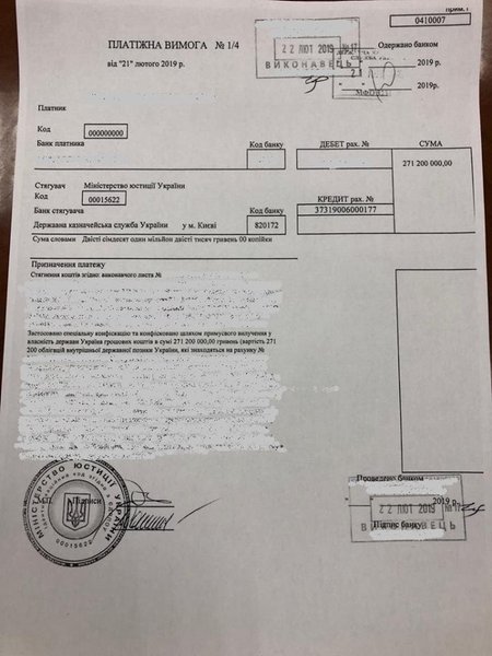 "Сообщаю тем, кто сомневался сегодня, 22 февраля 2019 года, средства в сумме 1478480000 грн перечислены на банковский счет Государственной казначейской службы Украины", - рассказала пресс-секретарь.