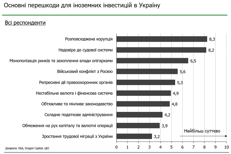 Об этом свидетельствуют результаты опроса иностранных инвесторов, который Европейская Бизнес Ассоциация (ЕБА), Dragon Capital и Центр экономической стратегии (ЦЭС) провели в апреле 2019 года.