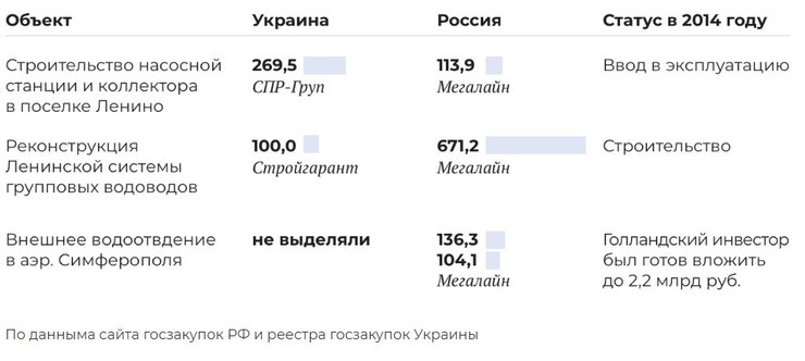 Суммы госконтрактов выделенные Украиной и Россией на строительство и реконструкцию объектов в Крыму, млн рублей: