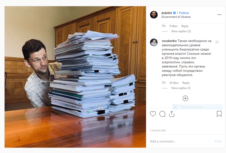 "Вы даже не представляете, сколько бумаги расходуют органы власти. Мне тут недавно показали бюджеты на закупку бумаги, я выпал в осадок", - написал Дубилет.