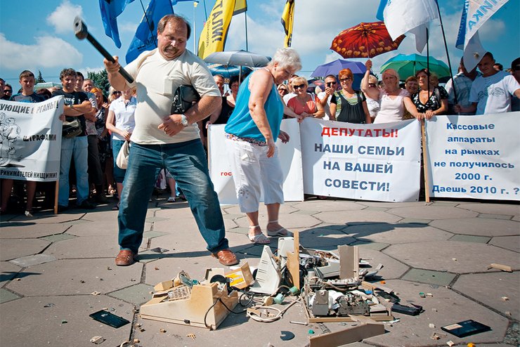 Кучмины дети. От рассвета до заката: Леонид Кучма (второй президент Украины, «красный директор», называющий себя ракетчиком) в 1998 году указом запустил в стране упрощённую систему налогообложения. Таким образом глава государства попытался стимулировать предпринимательство в Украине, которая после распада СССР начала выбираться из глубокого экономического кризиса. Кучмина реформа успешно взлетела, ведь упрощёнка открыла возможность для небольших предпринимателей платить единый налог (на тот момент от 20 до 200 грн в месяц) и работать легально, а государственный бюджет начал получать от них хоть и небольшие, но стабильные отчисления. Словом, между властью и мелким бизнесом стал действовать неформальный договор о том, что предпринимателей не трогают, а они, в свою очередь, не уходят в тень. Более 10 лет любые налоговые новшества обходили упрощёнку стороной, словно священную корову. То ли у тогдашней власти руки не доходили до мелких предпринимателей, то ли интуиция подсказывала, что эту сферу лучше не трогать. Первая попытка режима Януковича — Азарова сузить возможности для применения упрощённой системы и усилить контроль над малым и средним бизнесом в готовящемся к принятию Налоговом кодексе всколыхнула в Украине массовые налоговые протесты. Многотысячные акции по всей стране в ноябре-декабре 2010-го получили название Налоговый Майдан. Его участники настолько озлобились на тогдашнюю власть, что после визита для переговоров в палаточный лагерь на Майдане Незалежности тандема «Янукович — Азаров» показательно отдраивали за ними мостовую с мылом. Несмотря на упорство протестующих, требования Налогового Майдана власть учла лишь частично. Кучмину упрощёнку перекроили, хоть и не так радикально, как хотели изначально. Именно тогда предпринимателей-упрощенцев поделили на группы и обязали платить единый социальный взнос (ЕСВ). После этого новые «подарки» от власти малый и средний бизнес начал получать с завидной периодичностью. Как иронизируют предприниматели, кто бы ни пришёл к власти, им первым делом пытаются навязать кассовые аппараты. Команда Зеленского не стала исключением.