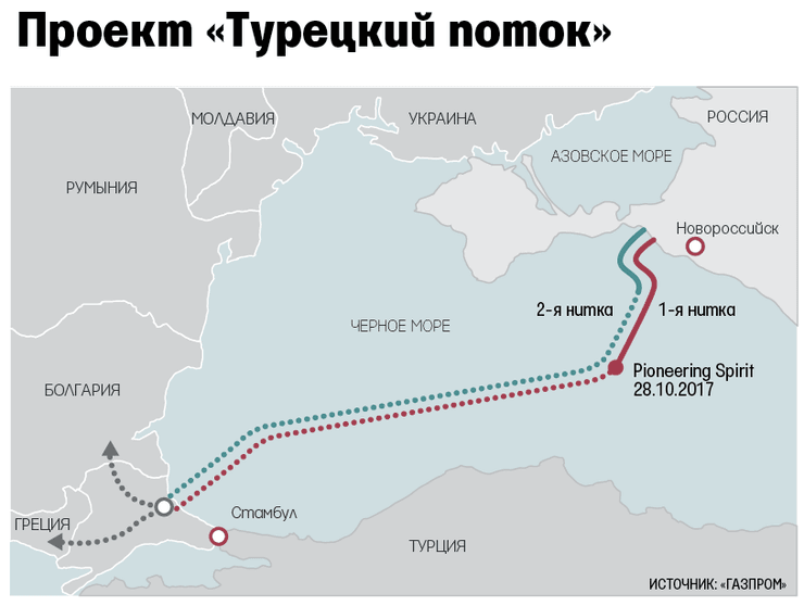 - Весной 2018 года "Газпром" заявил о завершении строительства первой нитки "Турецкого потока".