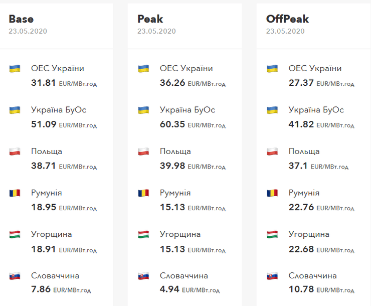 В то же время стоимость на рынке на "сутки вперед" (РСН) в Украине значительно выше, чем на биржах у европейских соседей. Так, 23 мая зафиксировали разницу в ценах в 6 раз (в пользу европейцев) между Бурштынским энергоостровом и Словакией.