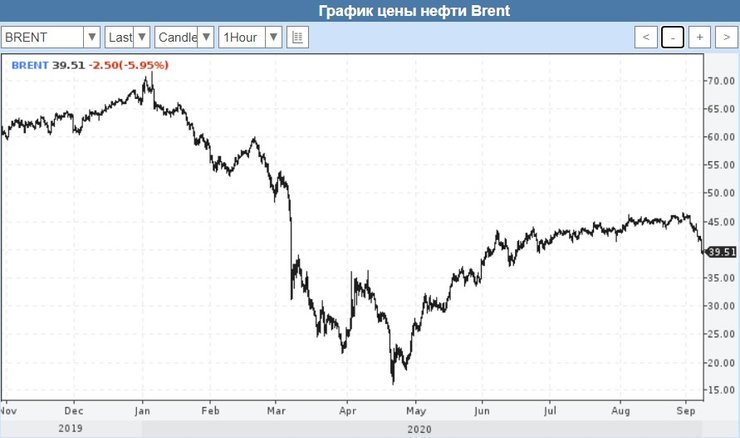 Торговые фьючерсы на нефть марки Brent Нефть Brent на бирже ICE, упали на 2,46 доллара, или 5,9%, до 39,55 доллара. Как сообщается в материале, оба нефтяных эталона упали ниже диапазонов, в которых они торговались в течение всего августа.