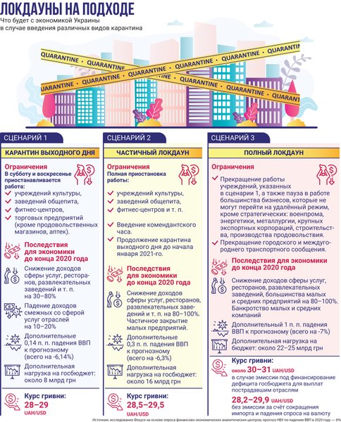 Правительство может предпринять попытку ввести локдаун с закрытием всех и всего, включая транспортное сообщение. Ведь ситуация с ростом заболеваемости и сокращением мест в больницах оставляет мало места для маневров. Если Кабмин решится, то тотальное закрытие придется на вторую половину декабря, традиционный полумертвый сезон для многих бизнесов, когда люди уходят в отпуска. Его могут затянуть до 15–18 января. Впрочем, даже такой "праздничный" локдаун способен оказать негативное влияние на компании и макроэкономику. За месяц весеннего локдауна гривня девальвировала на 5%. Зимой, если экспортеры притормозят с валютной выручкой, возможен такой же всплеск колебаний на валютном рынке.