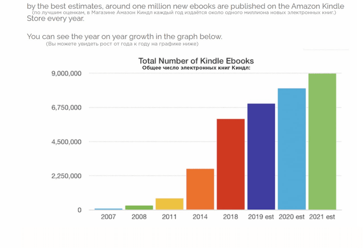Помимо художественной литературы, среди американцев, которые являются основной целевой аудиторией книжного амазон-бизнеса, очень популярны так называемые нон-фикшен книги. Это небольшие пособия, отвечающие на конкретный вопрос "How to?", к примеру, рецепты блюд, описание всевозможных диет, инструкции по рукоделию, и даже бытовая психология по воспитанию детей или развитию отношений. Дело в том, что граждане США привыкли считать свое время: у них зарплата почасовая. Так что намного выгоднее купить готовый конкретный ответ на свой вопрос на Амазон, чем потратить время на поиски чего-то достойного на просторах интернета. Рекорды по продажам в 2020-ом, кстати, были книжки на тему "Маска своими руками" и "Чем заняться на самоизоляции".