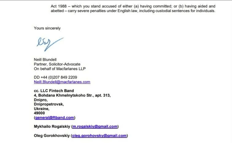 В уведомлении от Дмитрия Дубилета потребовали пояснений по сложившейся ситуации, в противном случае будет отправлено официальное заявление в международные органы по борьбе с мошенничеством, что грозит серъезными последствиями, вплоть до лишения свободы.
